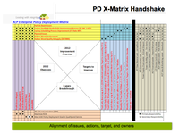 Policy Deployment (PD) is the DNA of the Lean Enterprise System. It continuously monitors a balanced scorecard across the enterprise and deploy focused corrective actions. There is a structured monthly PD review across all manufacturing facilities. A thorough diagnostic and related countermeasure are required. Then an executive summary PD is presented to the CEO and officers level. The following are key elements inside a Policy Deployment. PD has these key elements - Traffic Light, Balanced Scorecard, Safety, Quality, Service, Cost, and Inventory in the primary section. There is also a secondary section on capital spending, product price variance, environmental sustainability, and schedule adherence. Each site is required to deploy with the primary area if it is RED (actual unfavorable to target).