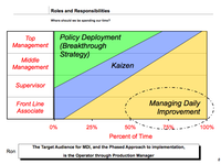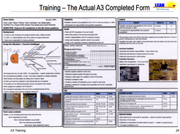 A best layout plan and system without qualified people (team members) will not be successful. That’s why a robust Lean Enterprise must have a structured leadership development program in action. Senior officers of a company must be the stewards or sponsors of the LeanSigma initiative. It is a top down process. At the front line or factory, it starts with establishing a 5s culture where pride, dedication, and accountability are developed and reinforced daily with 5s audits. A progressive MDI (Managing for daily improvement) program is ingrained into the daily operation cadence with Gemba Walk in a visual workplace. Traditional Greenbelt, Blackbelt, and Lean Master formal trainings are necessary to prepare the leadership to become mentors. A more impactful people development starts in the KPO (Kaizen promotion office) and DOJO (formal Kaizen training center) on the shop floor. Since 95% of the problems can be solved on the frontline, people development are vital to the Lean culture success. Therefore certified SME (Subject Matter Experts) is an effective way to empower shop floor team members to drive continuous improvements everyday. The A3 root cause analysis method, management and shop team members follows a formalized 6 step process to address a problem. This promotes buy-in and sustainability in the solution.