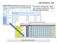 Execution of Lean journey starts with a Value Stream Analysis and Map (VSA & VSM). It provides a clear understanding of the current state of the operation by inviting the inputs of all stakeholders. It identifies the Takt time vs Cycle time gaps, process capability, lead time, inventory levels, and other process constraints. Key improvement areas are identified an prioritized matching the cascaded X-matrix. Then a future state map is developed with a Hoshin project calendar with discrete owners and timeline. All Kaizen activities are entered and tracked in the Lean SharePoint site. Monthly review is held by each site Lean Champion to track Hoshin performance and PD productivity improvement. It is a close loop system.